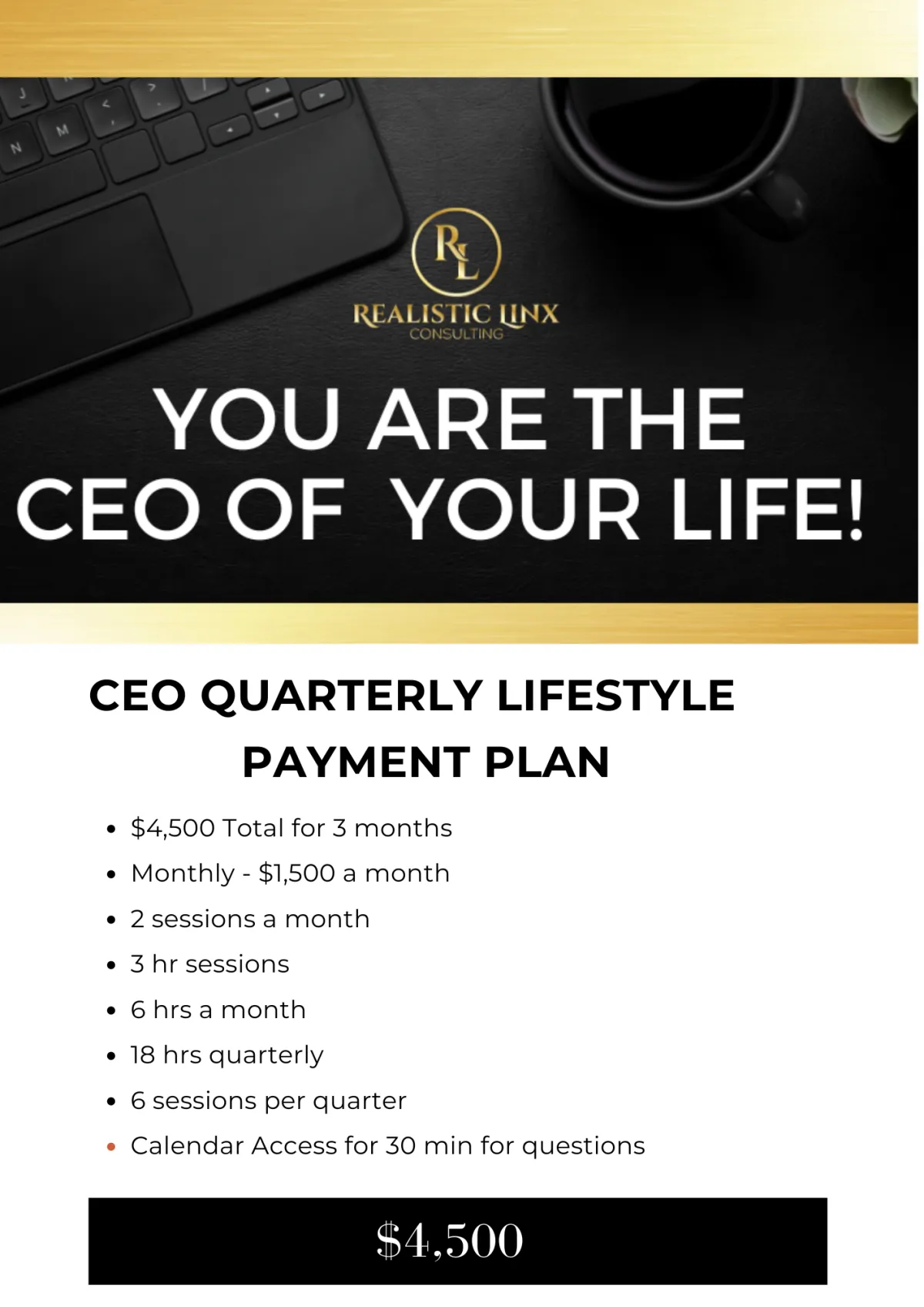 Our Business & Finance Strategy Coaching Program is a comprehensive , strategic and personalized coaching experience tailored to meet your unique needs and objectives. Through a quarterly series of one-on-one coaching sessions & practical guidance, you will gain the insights and tools necessary to develop and implement effective business strategies that align with your business vision and goals.